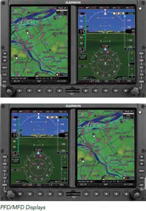 Available in two versions — one with the primary flight display (PFD) on the right, the other version with the PFD on the left — the G500H offers maximum installation versatility. The system is designed so that it can be installed in a single or dual configuration. Installation is typically done by an authorized Garmin Dealer. The installation itself is straightforward and there are no special mechanical or electrical considerations to take into account. Since this is a digital system, all system communications between LRUs is over RS232, RS422, RS485, ARINC 429 and Ethernet buses.
